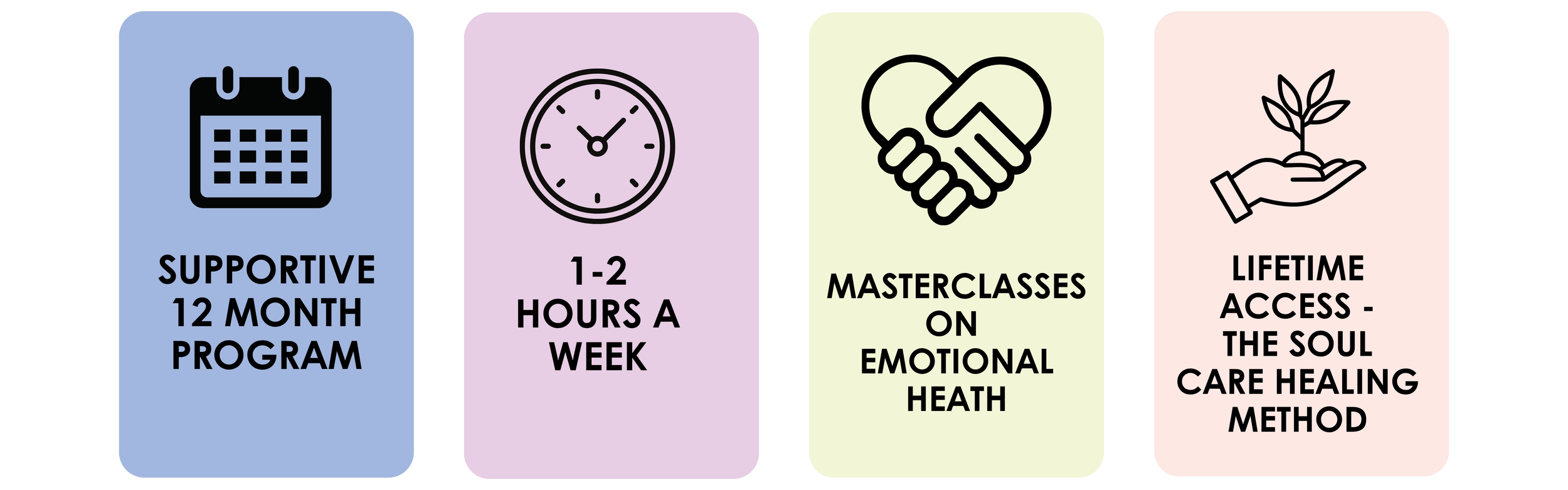 You’ll receive deep, personalised support over 12 months — with bi-weekly 1:1 calls, expert-led masterclasses, touchpoint voice message support, and full access to The Soul Care Healing Method