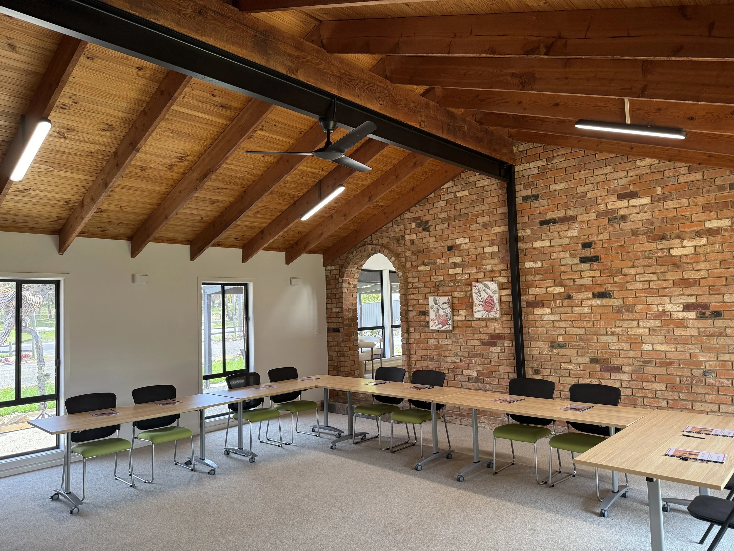 -1x Meeting room with table and 7x dining chairs with vinyl timber flooring